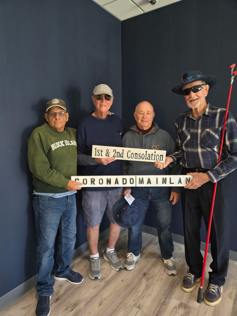 CONSOLATION: 1. Charlie Jones & Vaughn Long – Coronado-Mainland 2. George Snyder & Paul Ayotte – Hawthorne/Leesburg 3. Jerry Jabaut & Phil Worland – Coronado-Mainland 4. Doug Peuler & Al Wisman – Holiday RV