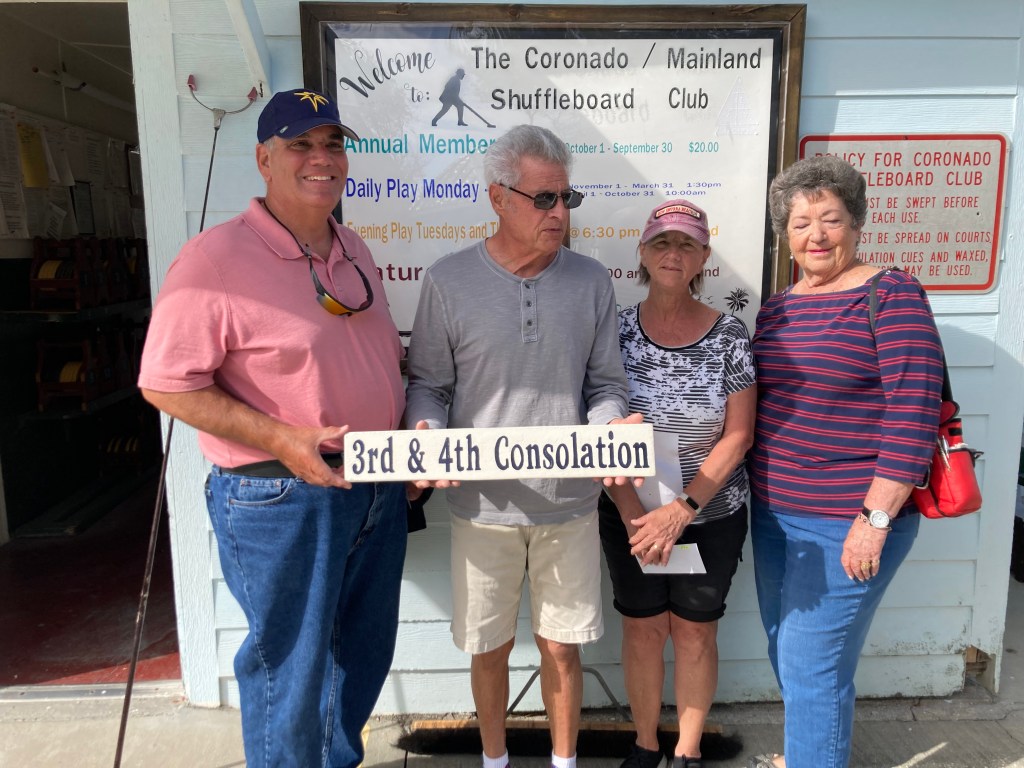The Coronado Mainland Shuffleboard club hosted the ND12 Pro Only and ND13 Amateur Only Tournaments on December 1/2, 2022, Bonnie Radke and Debbie Evans were the Directors. The weather was beautiful for both days and congratulations are due to all the shufflers for a great competition.