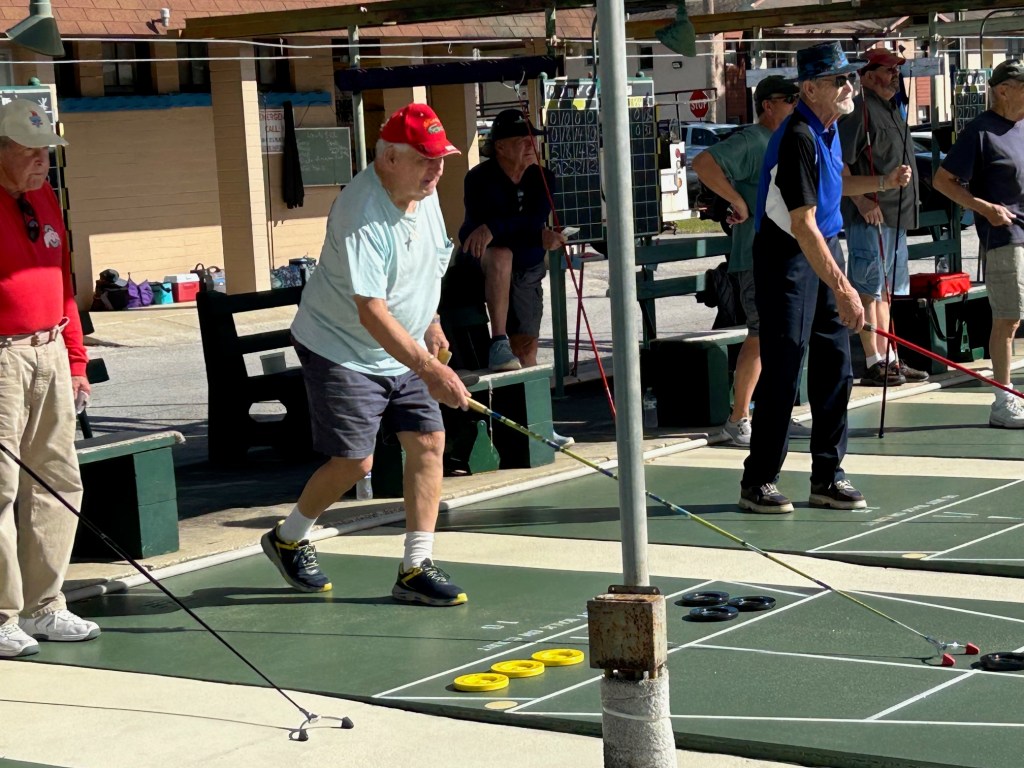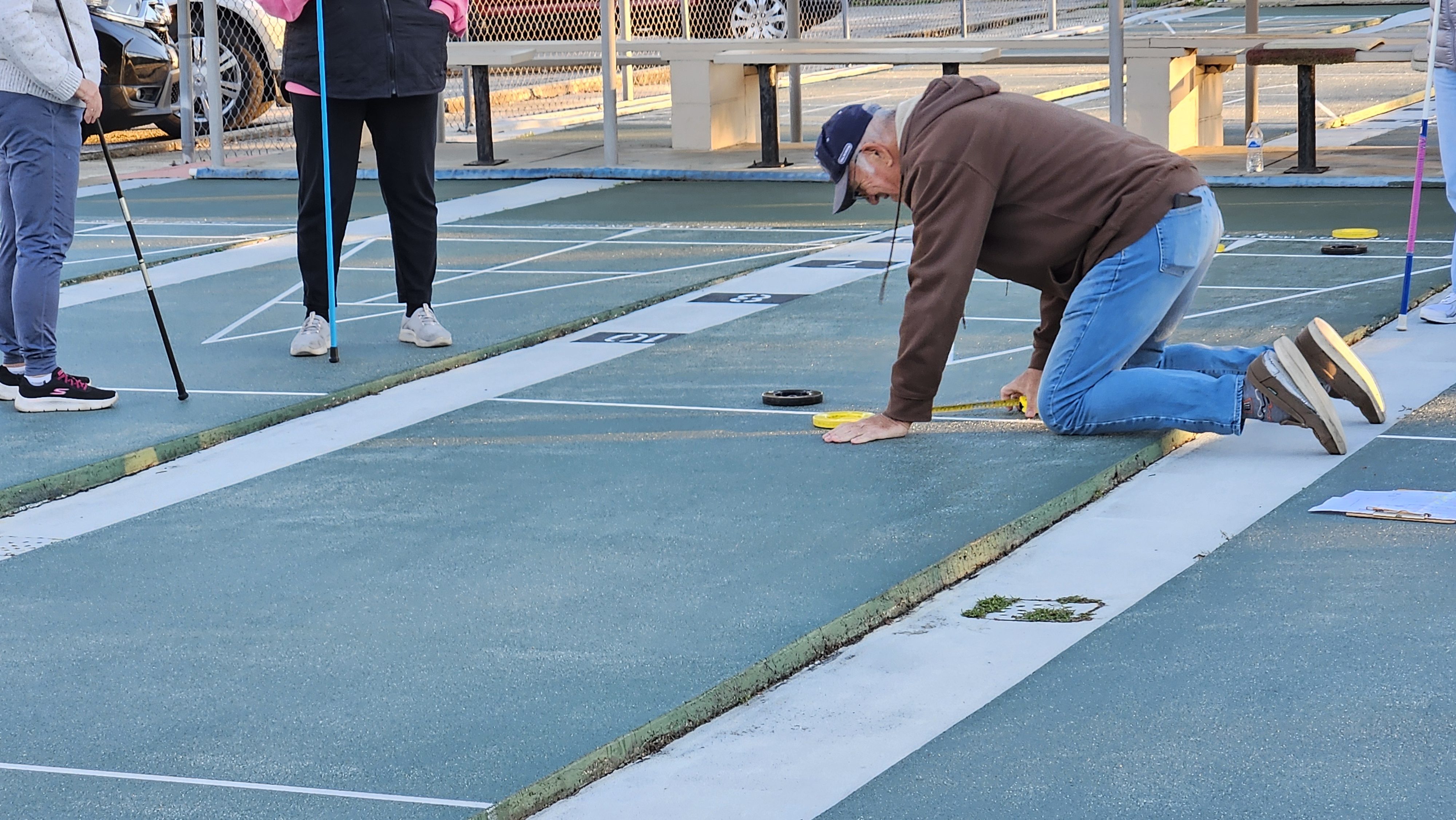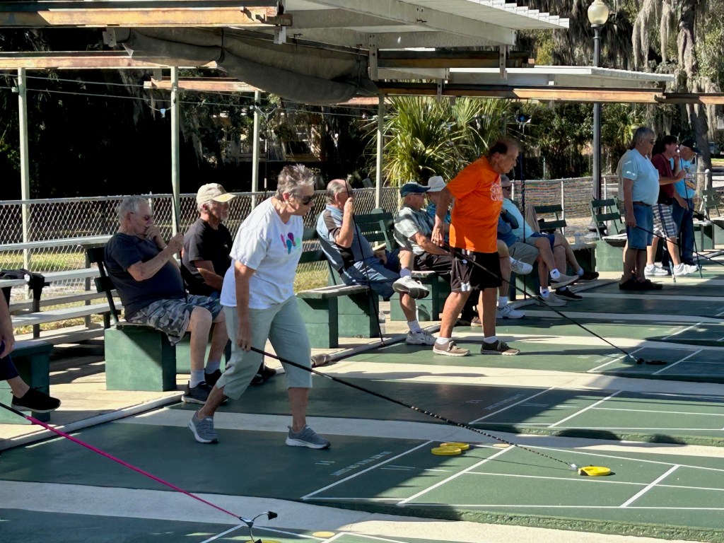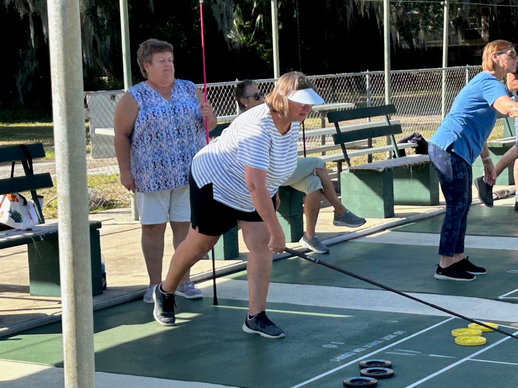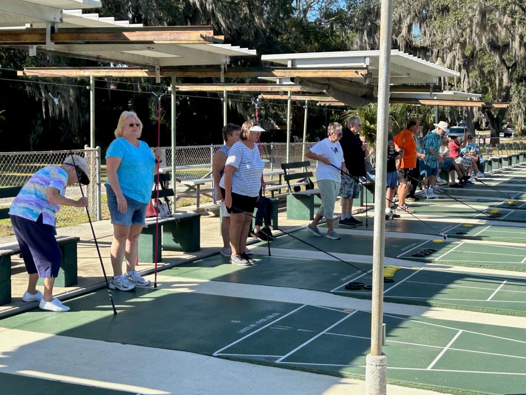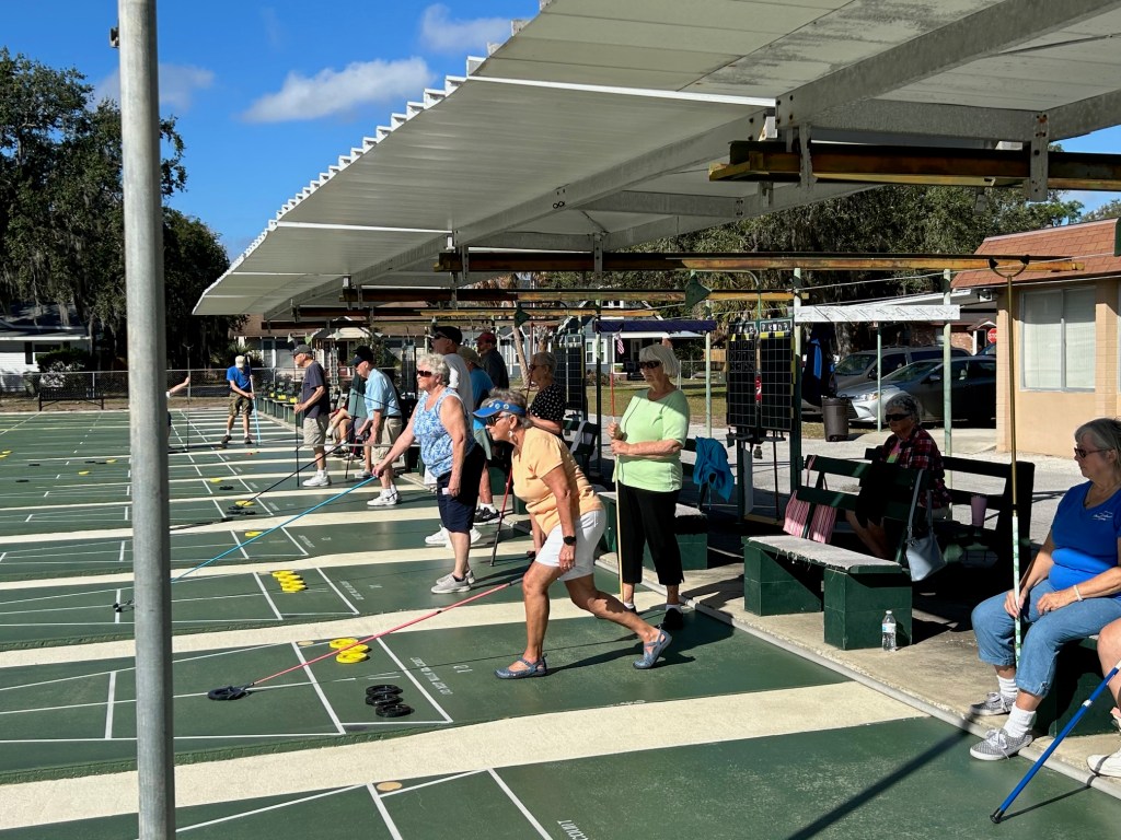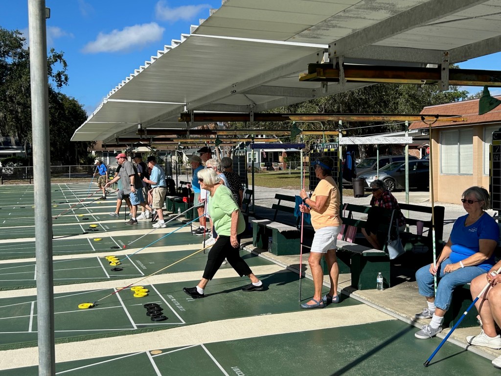 The Tavares Shuffleboard Club hosted State Amateur Tournament A16b on January 29, 2024 . Eleven teams participated from Mid FL Lakes, Hawthorne, Holiday RVV, Leesburg and Clermont. Rod Lewis was the director and Edward Jones and All American Washers were the sponsors. The director had a few close calls.