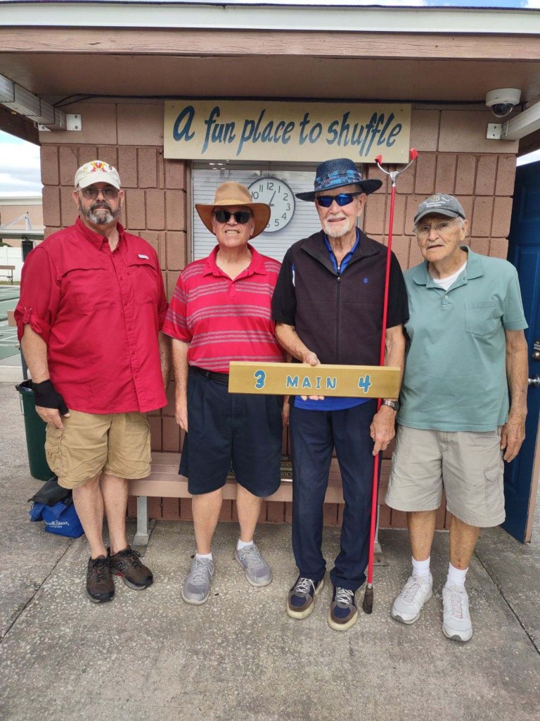 The Deland Shuffleboard Club hosted the ND20 Any Doubles Tournament on 2/8,9/24. the weather was perfect and the courts were in beautiful condition. Richie and Caroline Burrell were the Directors and the Deland Shuffleboard Club and Central Florida Eye Specialists were the sponsors. There was a really good turn out for the challenge with 26 teams signing up.