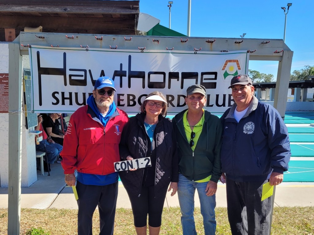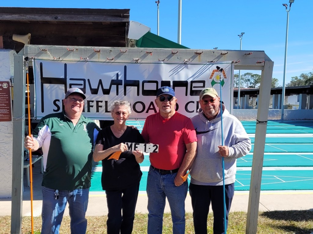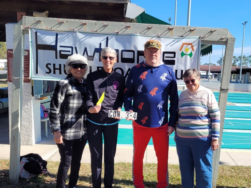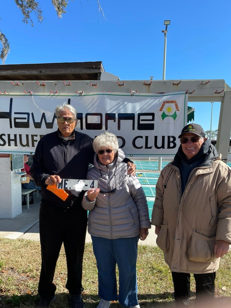The Tavares Shuffleboard Club hosted the State Tournament A16B Any Amateur Doubles Tournament on January 27, 2025. Rod Lewis was the Director and Ed Jones was the sponsor. There were 9 teams and it was a cold start, but the sun helped later. The tournament was finished in one day . Congratulations to all the shufflers.