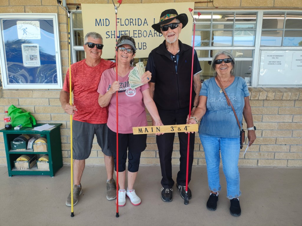 Mid Florida Lakes hosted the ND20 Mixed Doubles Tournament on 2/12/26. Steve Clark was the Director and Randy & Alecia Barker (IMO Shelby Campbell) Steve and Eileen Clark (IMO Dick Wandersee) and Diana Vincent (IMO Jerry Vincent) were the sponsors. Congratulations to all the shufflers.